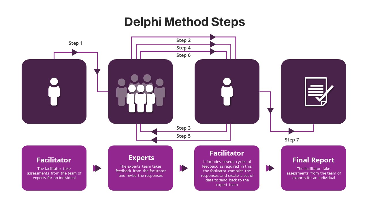 一种信息收集技术,用于就某一主题达成专家共识。该主题的专家匿名参与了这项技术。主持人使用调查问卷来征求与主题相关的重要项目要点的想法。这些回复将被汇总并重新分发给专家以征求进一步的评论。经过几轮这样的过程,可能就会达成共识。德尔菲技术有助于减少数据偏差,并防止任何一个人对结果产生不当影响。